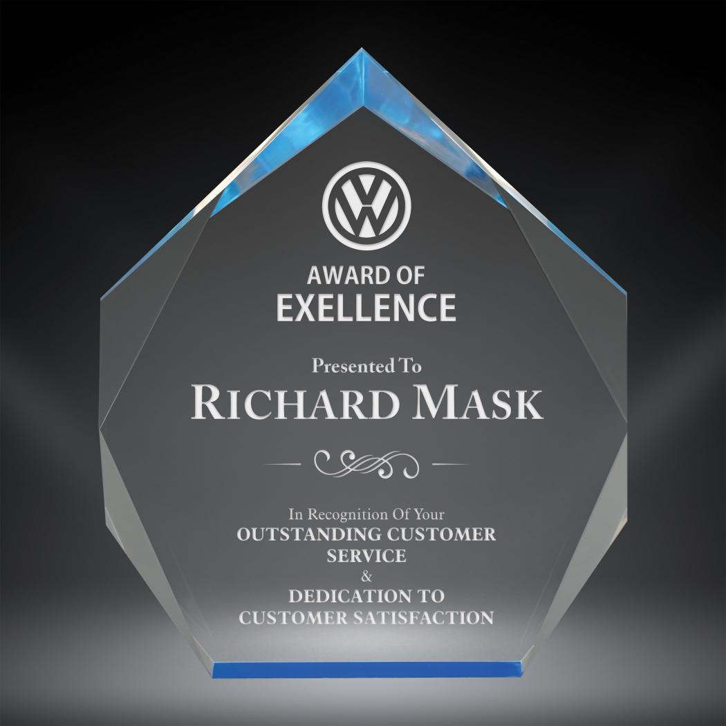 Elegant 1" thick diamond cut freestanding acrylic in 3 sizes. Small Spectra Diamond 6" Price $54.95 Engraving Type Same engraving for all Different engraving on each Quantity Please type your engraving in the spaces provided.We will engrave EXACTLY what is entered.PLEASE double check your spelling before sending your order. Line 1 Maximum 25 characters. Line 2 Maximum 25 characters. Line 3 Maximum 25 characters. Line 4 Maximum 25 characters. Line 5 Maximum 25 characters. Line 6 Maximum 25 characters. Line 7 Maximum 25 characters. Line 8 Maximum 25 characters. Quantity Logo $10.00 will be added if you uploaded a logoOne file only.2 MB limit.Allowed types: jpg jpeg gif png bmp pdf ai. Engraving
