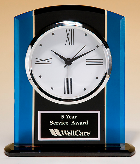 This 6 1/4" tall black and blue glass clock is a great option at an affordable price.