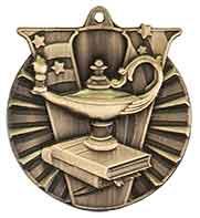 Lamp of Knowledge 2" Victory style medal with three dimension detailed artwork and engravable back. Available in gold. (Silver and bronze are available by special order; please contact us directly for more information.) Your choice of pin drape or neck ribbon.