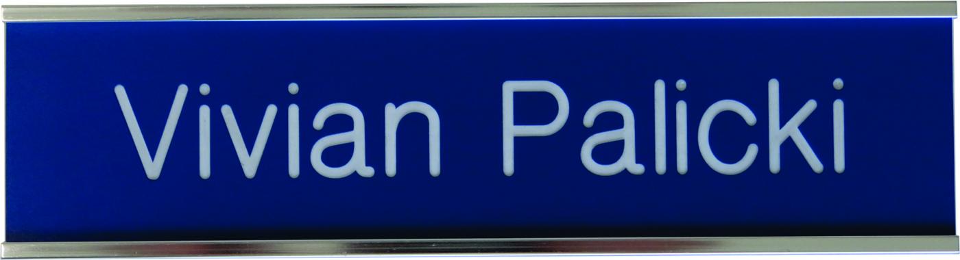 One line door/wall name plate with your choice of panel and holder color. 1 Line Door/Wall Plate With Holder Price $16.95 Engraving Type Same engraving for all Different engraving on each Quantity Please type your engraving in the spaces provided.We will engrave EXACTLY what is entered.PLEASE double check your spelling before sending your order. Line 1 Maximum 30 characters. Quantity Desk Plate Size - Select a value -2”x8” $16.952”x10” $18.95 Color Options - Select a value -Black backgound with gold lettersBlack background with white lettersBlue background with white lettersChocolate background with white lettersBurgundy background with white lettersGold with black lettersGray background with burgundy lettersGreen fleck with gold lettersIvory background with brown lettersPine Green background with white lettersPurple background with white lettersRed background with white lettersSliver background with black lettersWhite backgound with black lettersWhite backgound with blue lettersWhite backgound with green textWhite backgound with red textWoodgrain finish with white letters Name Panel Holder Color - None -Gold Nameplate HolderSilver Nameplate Holder Font Choice - None -Gothic BlockOptimalCursiveTimes New RomanCataneo Engraving