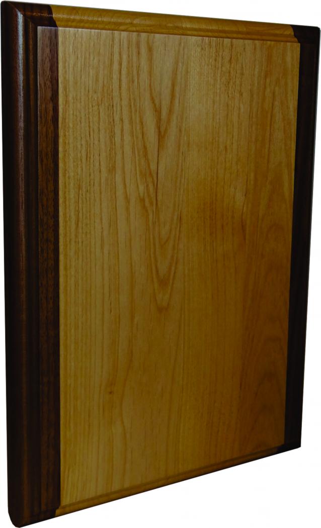 The rustic look of alder wood and black walnut are combined to make a unique plaque which is laser engraved directly into the plaque itself.
