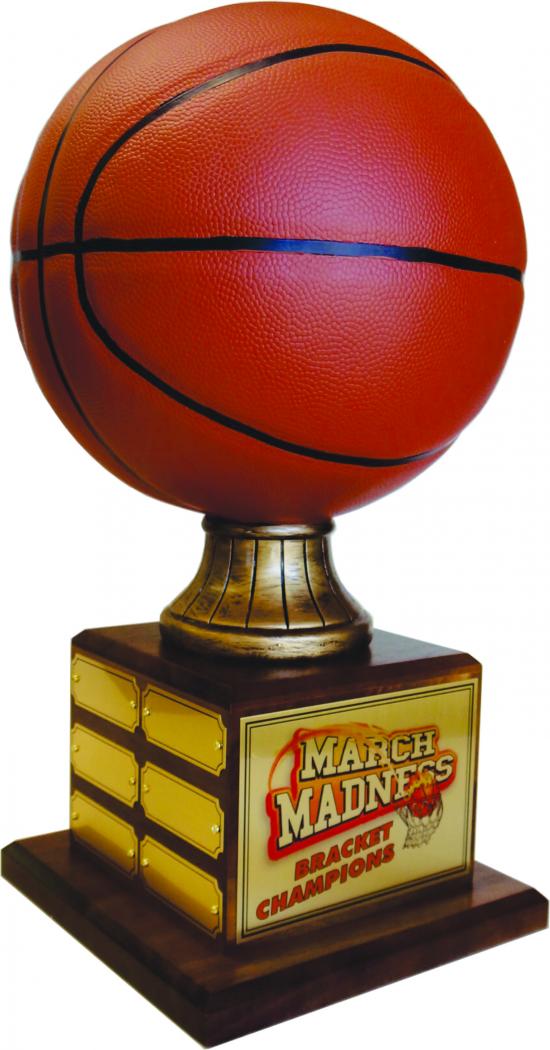 The March Madness basketball perpetual trophy utilizes a solid walnut base and is a great way to acknowledge your current and past league champions. Use the logo shown or upload your own. *Price does not include engraving the 18 individual perpetual plates.